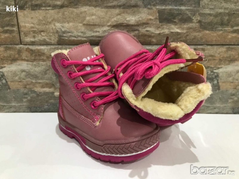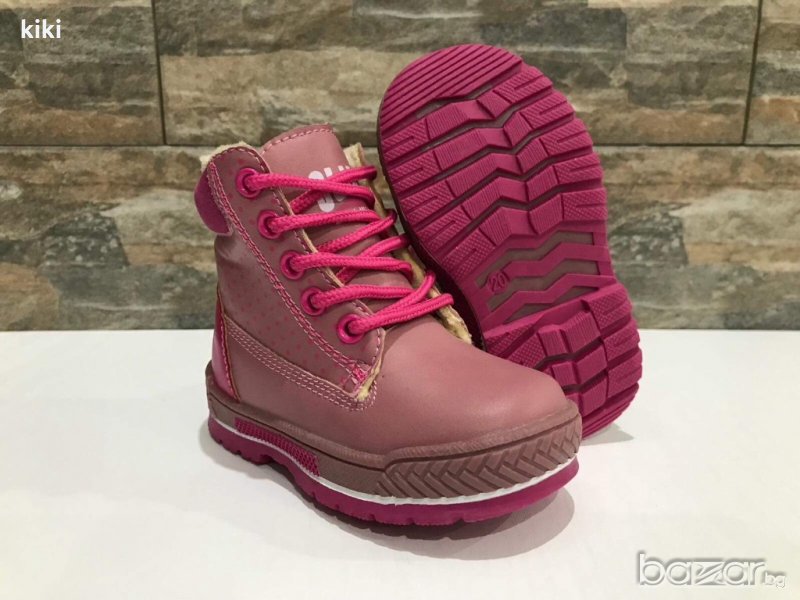 Детски ботушки с връзки и страничен цип.Модела е от еко кожа отвън и топла вълнена вата отвътре.Подметката е от термо каучук със стабилен грайфер против пързаляне. Номера:20-13,5см.
