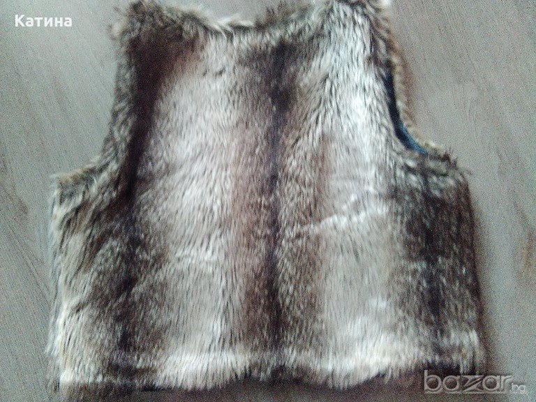 Next късо пухкаво елече в сивобежово-кафява гама.Размер на етикета М-L.Отговаря на М.Обличано веднъж.Като ново.