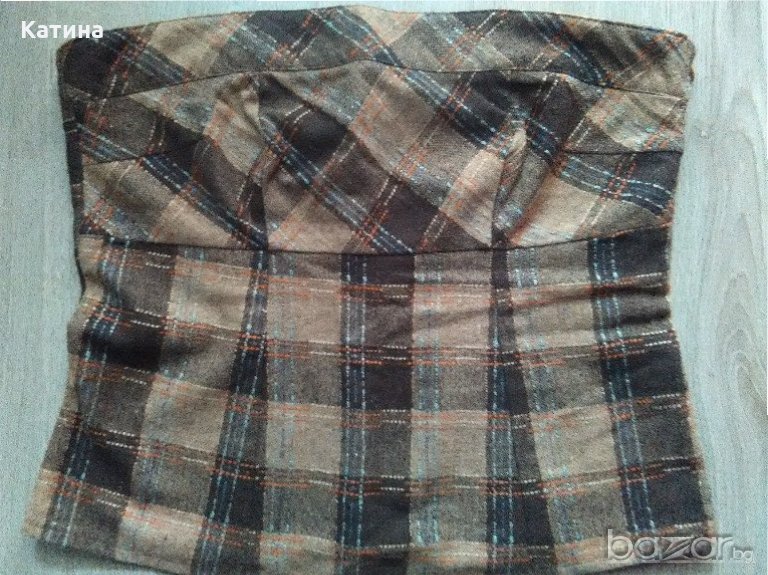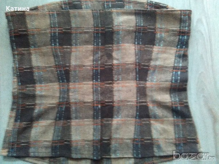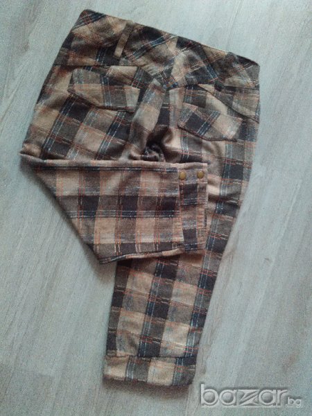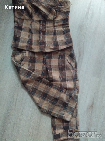 Страхотен комплект в бежово-кафява гама.Панталон и бюстие от фина вълнена материя.Подходящ за всекидневие и за по-специален повод.Размер на етикета 44.Обличан 2- 3 пъти.Като нов.