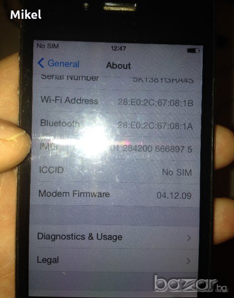 Iphone 4 е отключен, но не открива сим картите и операторите предполагам че е слота за картите прави проблем иначе си работи както се вижда от снимките не е заклюен и не е слаган клауд.