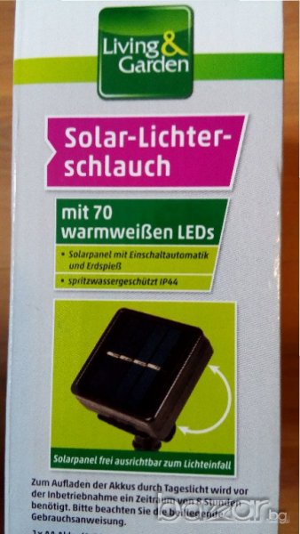 Соларен маркуч със 70 LED лампички, 7м - нови!, снимка 1 - Лед осветление - 20207810 Соларен маркуч със 70 LED лампички, 7м - нови!, снимка 2 - Лед осветление - 20207810 Соларен маркуч със 70 LED лампички, 7м - нови!, снимка 3 - Лед осветление - 20207810 Соларен маркуч със 70 LED лампички, 7м - нови!, снимка 4 - Лед осветление - 20207810 Соларен маркуч със 70 LED лампички, 7м - нови!, снимка 5 - Лед осветление - 20207810 Соларен маркуч със 70 LED лампички, 7м - нови!, снимка 6 - Лед осветление - 20207810 Соларен маркуч със 70 LED лампички, 7м - нови!, снимка 7 - Лед осветление - 20207810 Соларен маркуч със 70 LED лампички, 7м - нови!, снимка 8 - Лед осветление - 20207810 1/8
