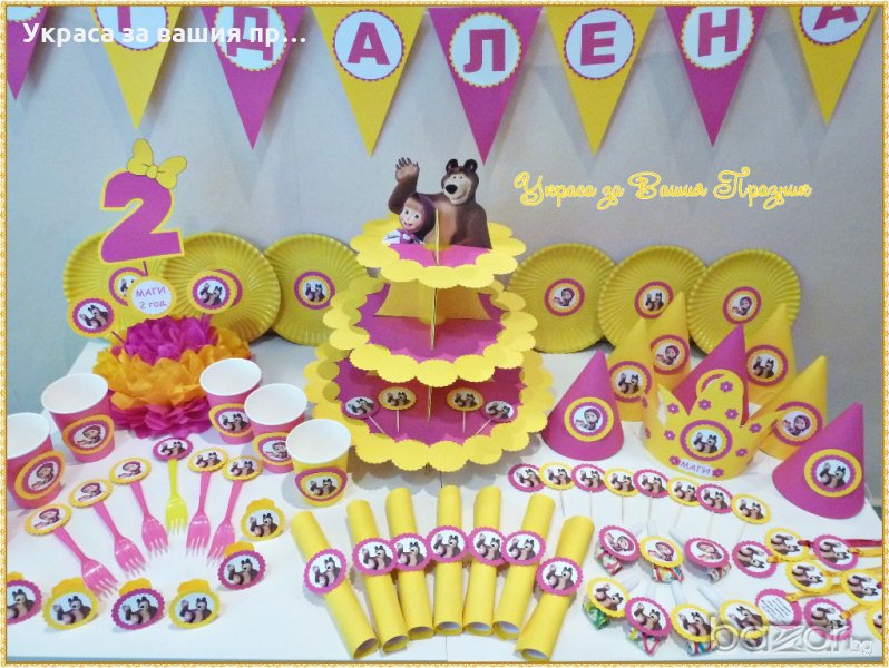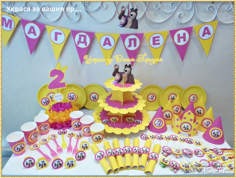 украса за детски рожден ден на тема Маша и мечока → Обява 20217468