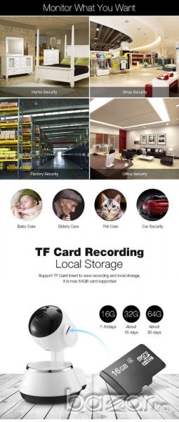 720P - 1.0 мегапиксел резолюция, вграден микрофон за запис на аудио, двупосочен разговор (може дса се ползва като бейбифон)