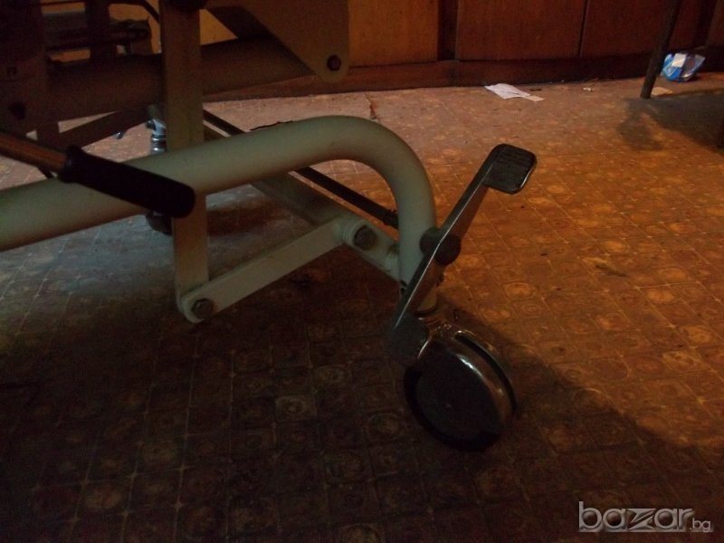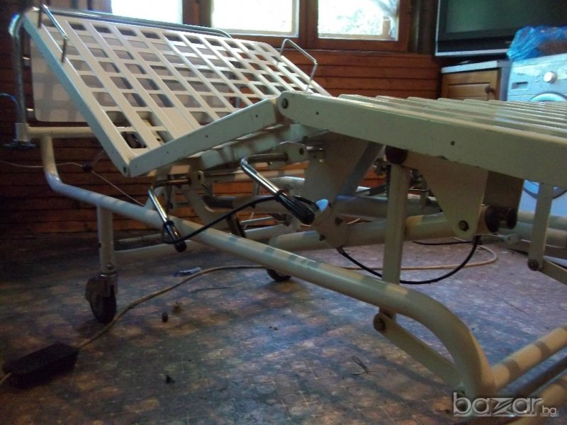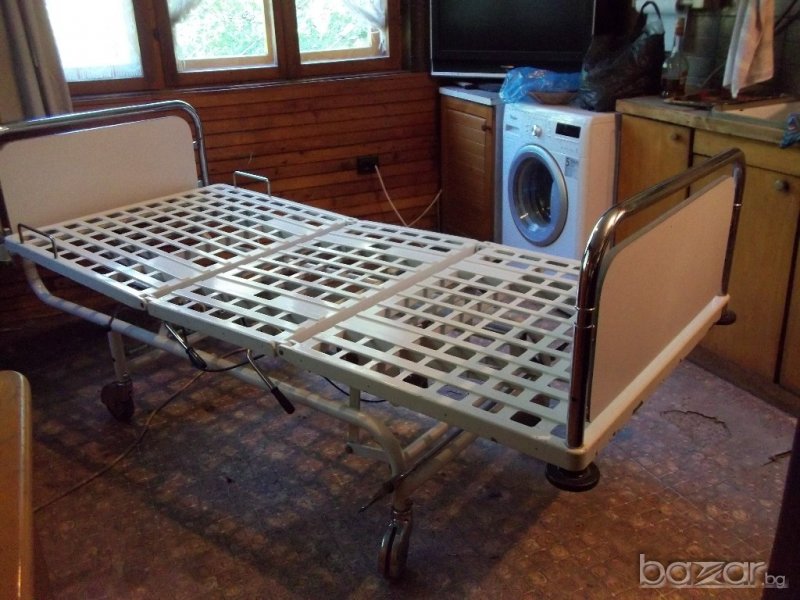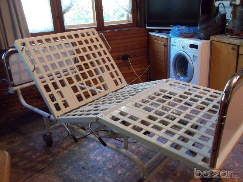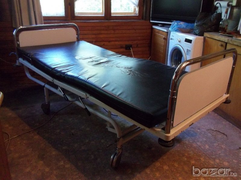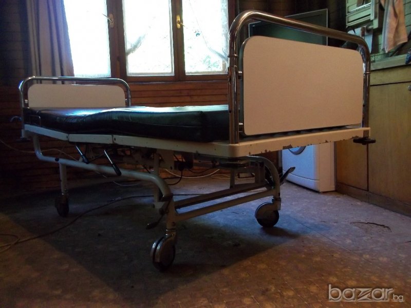 Леглото е немско производство с размери 223/95/височина 56 см без матрак / , изключително удобно и надеждно ,както за обслужвания , така и за обслужващия,с хидравлично управление на положенията на отделните модули. Може да се използва за обгрижване на болен в домашни условия, за прегледи в кабинет , амбулатория или масаж,пиърсинг ,както и за центрове на БЧК в къмпинг или в планината. Давам го и под наем с предварителна уговорка със осигурен транспорт и инсталиране.Цената може да се коментира.