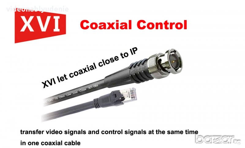 Коаксиално предаване на видео с висока резолюция и контролни сигнали, поддържащо 75-3 стандарта за предаване без загуби по линията до 500 метра разстояние