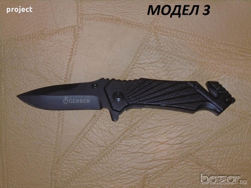Сгъваем Gerber Bear с назъбено острие и гумена дръжка.Цена 9.90Е.