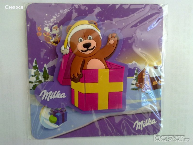 Продавам коледен магнит на Милка (Milka). Малък и симпатичен подарък, с който да украсите или изненадате близки хора. Има 3 вида- мечка, снежен човек и Дядо Коледа.