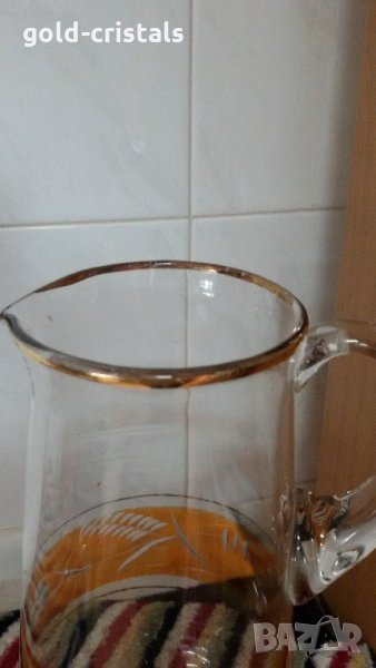 Ретро стъклена кана с позлата и златни кантове неизползвана кристално стъкло гравирана цветно стъкло стара старинна ретро арт декор винтидж колекция стари старинни антикварни предмети обзавеждане за дома и семейството подходящи за подарък за ценители и колекционери