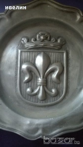 стара викторианска чиния за стена.материал-цинково калаена сплав.диаметър 32см,маркировка на гърба.