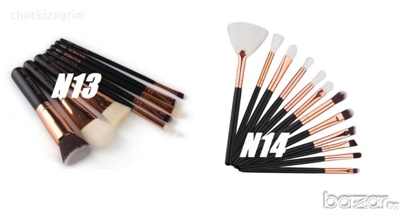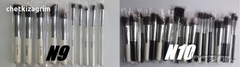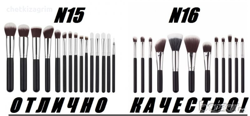 - Четките са различни по цвят, форма, предназначение, визия и количество във всеки комплект. Някои от комплектите са със специални кожени козметични чанти за съхранение на четките а други нямат.