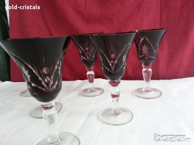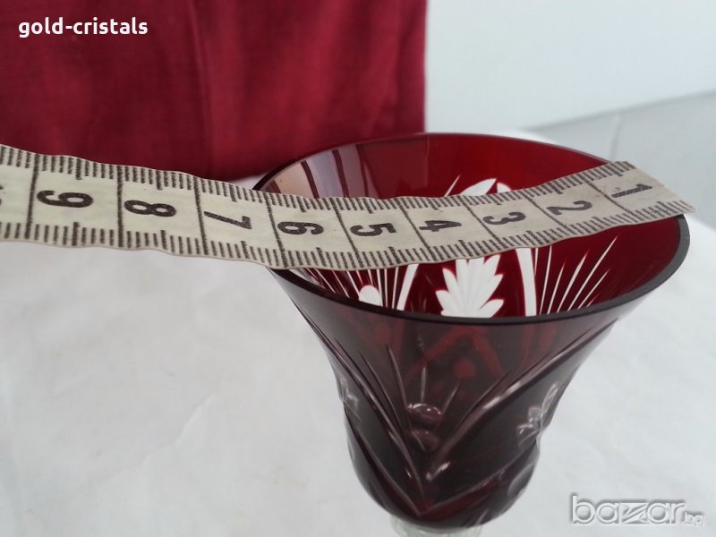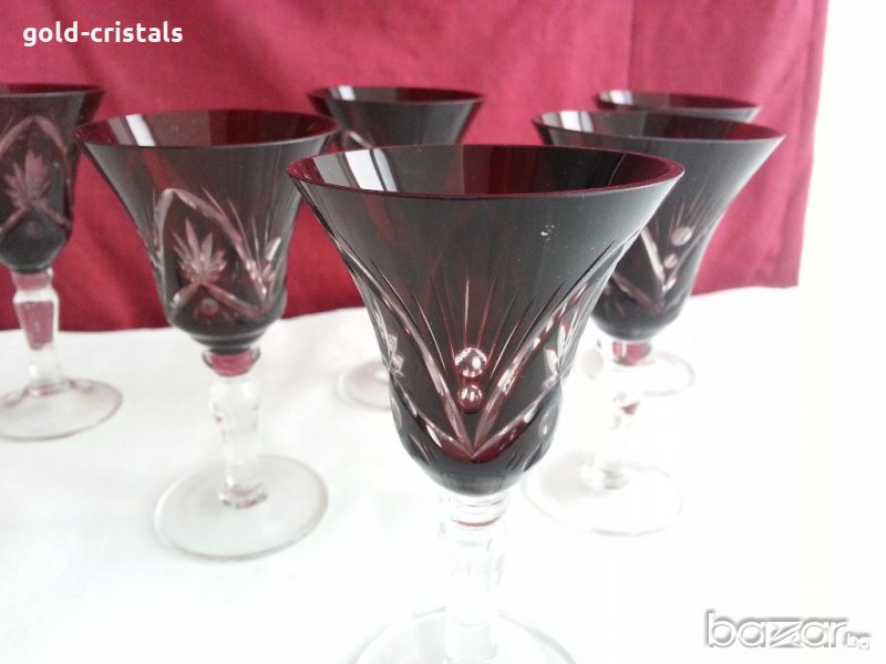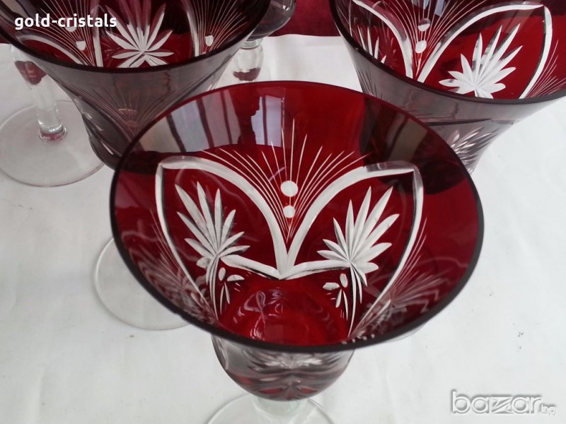 сервиз чаши цветен червен кристал ръчно гравирани за вино 6бр -580лв за ракия 5бр-450лв кристални чаши сервиз комплект сет лот ретро арт декор винтидж колекция старинни антикварни предмети обзавеждане за дома и семейството подходящи за подарък за ценители и колекционери