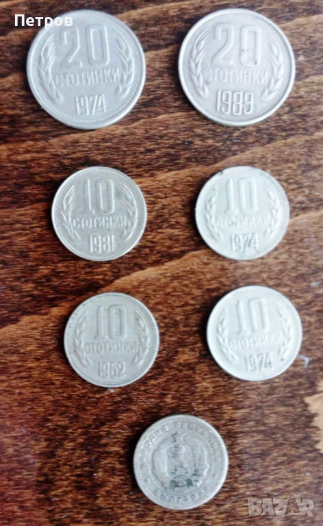 10 ст. - 1981 г. - юбилейна, с надпис "1300 г. България" - на гърба - 1 евро. Другите монети имат надпис на гърба "Народна република България".