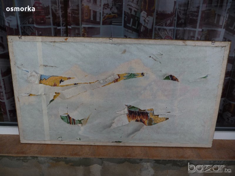 Стара картина направена от конци от времето на соца.