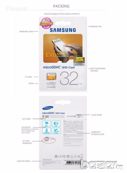 памет на SAMSUNG 32G SDHC 80MB / s 95MB / s Клас EVO + MicroSD Клас 10