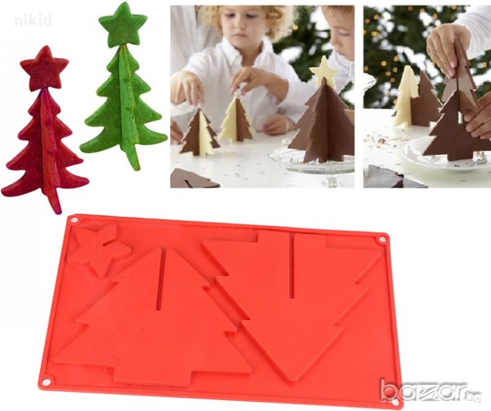 3D двойно сглобяема елха силиконов молд декор украса торта фондан шоколад тесто отливка гипс → Обява 20279083