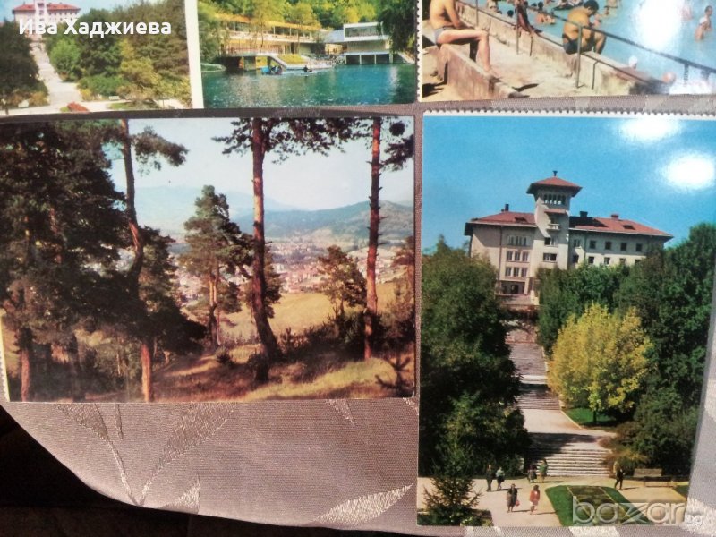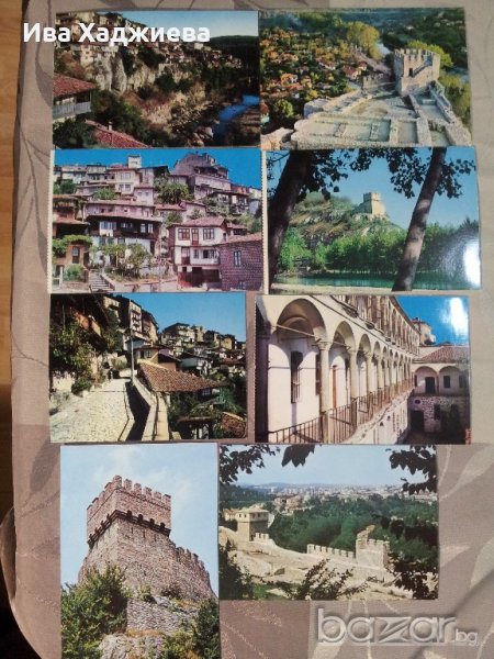 Велинград- 9 бр., Велико Трърново- 8 бр., Толбухин- 3 бр., Габрово, Пловдив, Преображенски манастир, Кюстендил, Село Шипка, Троянски манастир, Русе. 28 бр. картички за 8 лв. Ретро снимки на български градове.