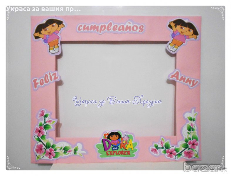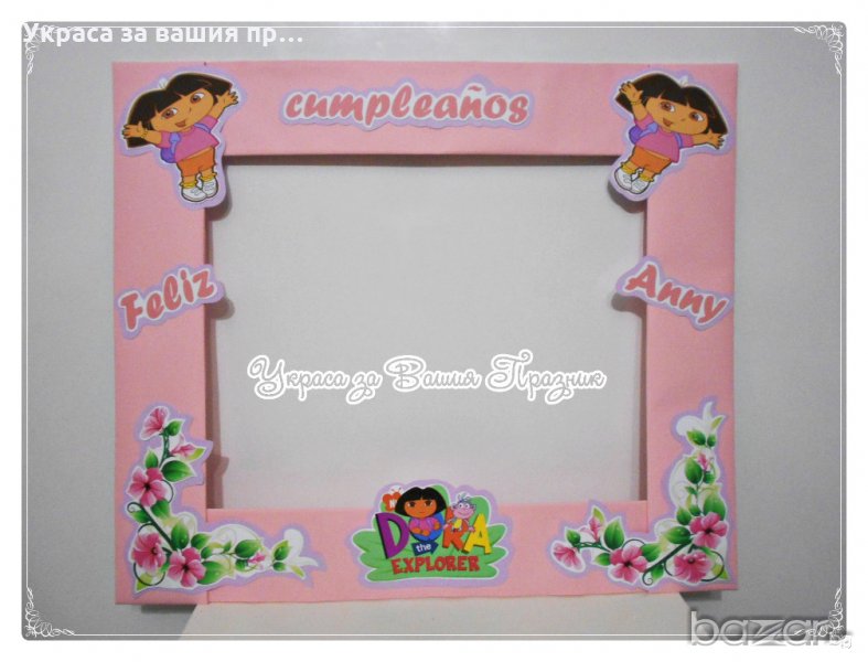 украса надпис и рамка за снимки по време на партито с Дора изследователката