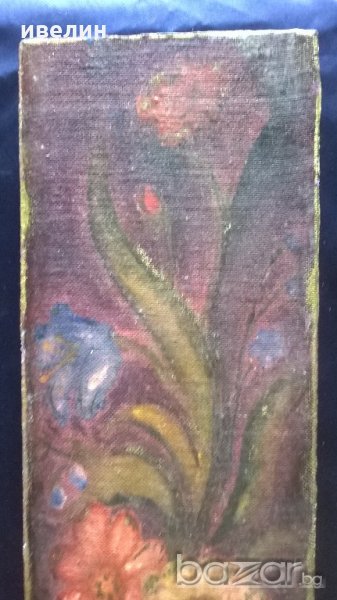 картина-цветя.масло на каширан картон на дъска,подписана.размери 38см/13см