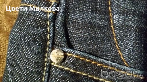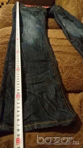 Страхотни дамски дънки, фабрично намачкани. Уникален модел! По етикет са размер 28. На снимките има повече информация за тях!