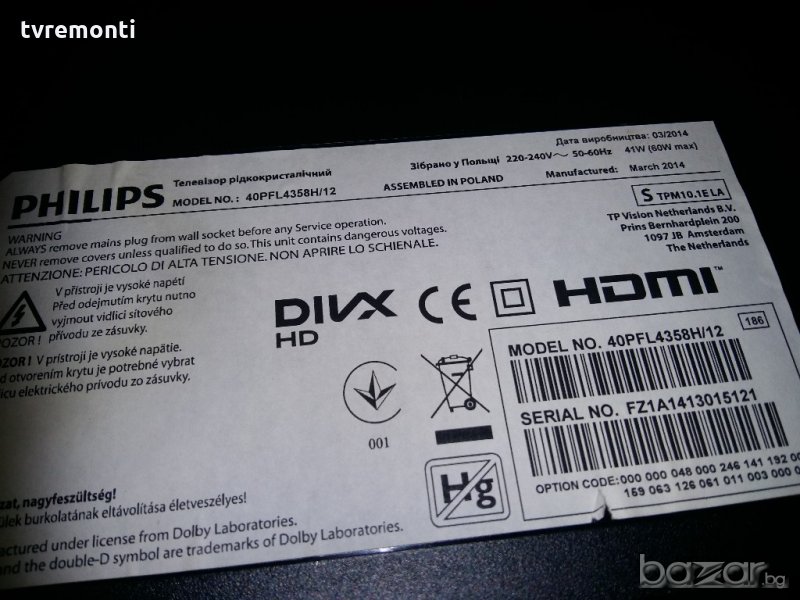 POWER SUPPLY 715G5792-P03-000-002M модел PHILIPS 40PFL4358H