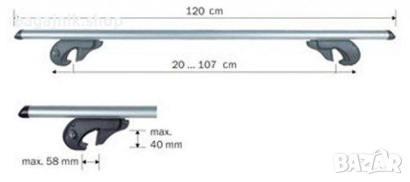 За автомобили с релси на покрива с макс. разстояние 107 см.