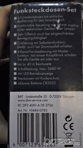 Щепсели 4бр. с дистанционно Intertek, 40m, 3680W - немски, нови! → Обява 20316888