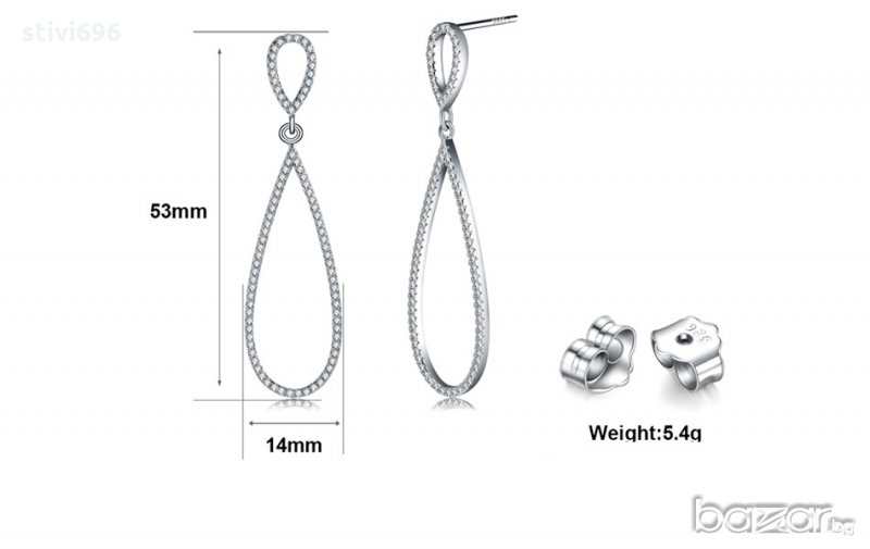 Обеци капка S 925 стерлинг+циркон. → Обява 20322476