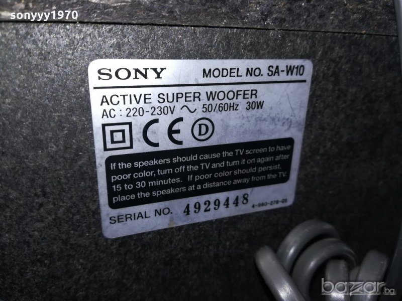 sony sa-w10 active super woofer-42х36х21см-внос швеция