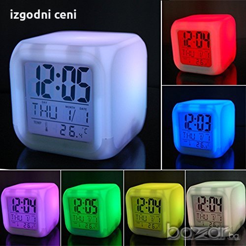 Внесете уют и настроение у дома или на работното място със симпатичния мултифункционален часовник, термометър и будилник в едно. Часовникът свети в 7 редуващи се различни Led светлини.