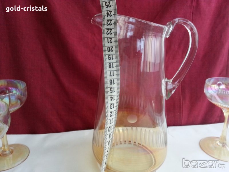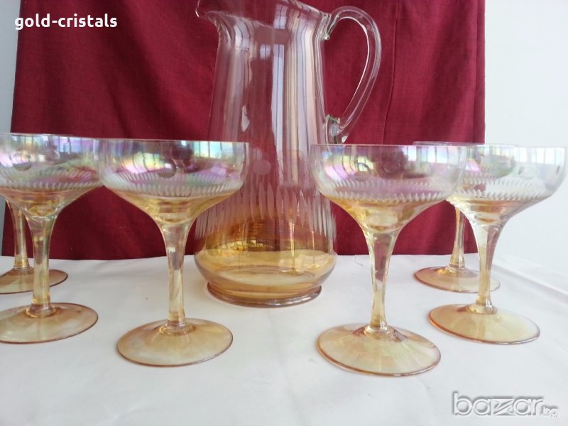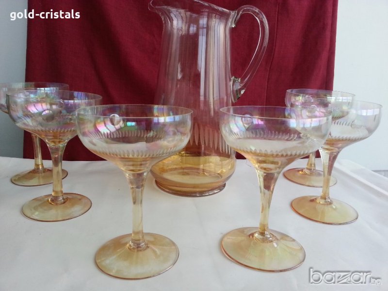 сервиз за вино много красиви перлени и гравирани кана с 9бр чаши -145лв или кана с 5бр чаши за вино -130лв комплект сет лот ретро арт декор винтидж колекция стари антикварни предмети обзавеждане за дома и семейството подходящи за подарък за ценители и колекционери