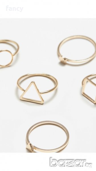 Нов сет от 5 златисти пръстена Mango. Размер L. Диаметър 1.83см. Нови, с етикет.