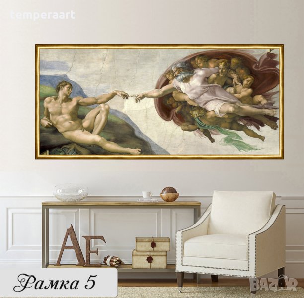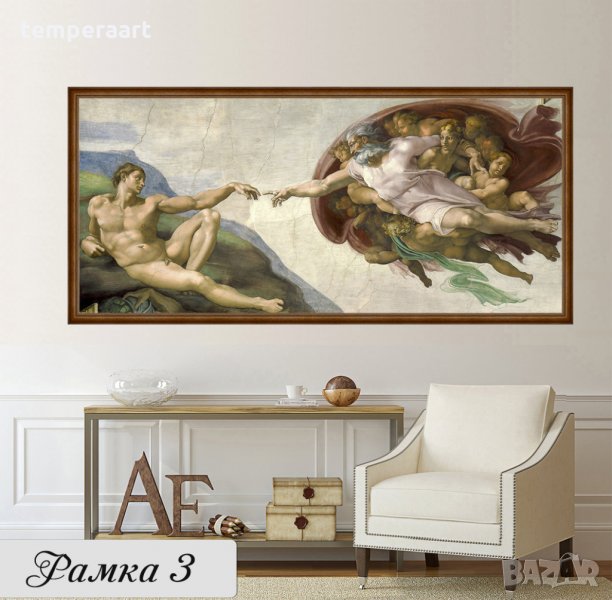 Сътворението на Адам- Микеланджело, репродукция, канава, картинно пано, картина за стена № 159