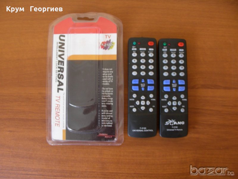 F2100+ e TV дистанционно управелние, което лесно може да замени оригиналното ДУ на телевизора Ви. Изключително лесно се настройва . Не се нуждае от кодове за различните марки телевизори , а автоматично ги намира ! Става както за старите кинескопни телевизори , така и за новите LSD и LED телевизори !