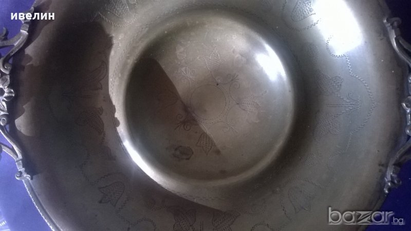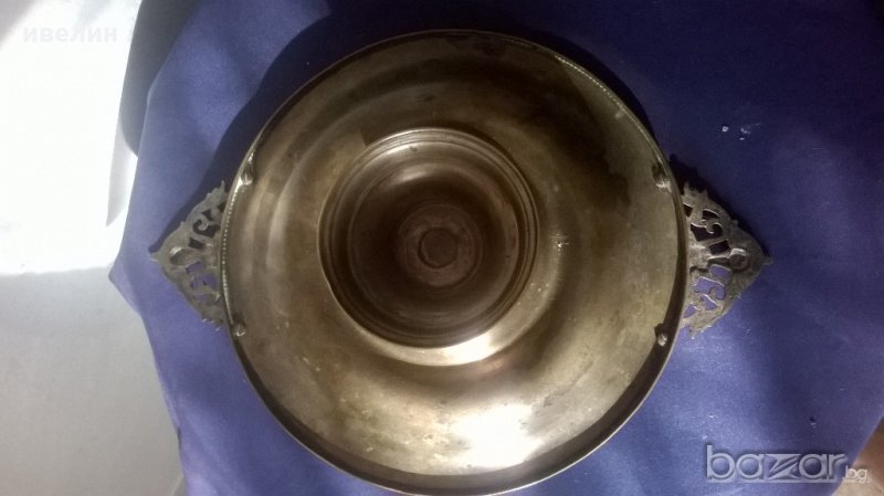 стара фруктиера,купа-арт деко.материал-месинг с бронзови дръжки.автентична.висока е 11см,широка 34см.диаметър 22см.надписана от началото на 20 век.