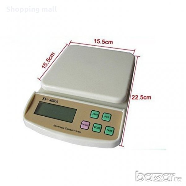 Везната е с тегло 440 гр., размери: 225х155х43 мм и се захранва с две батерии АА 1,5V.