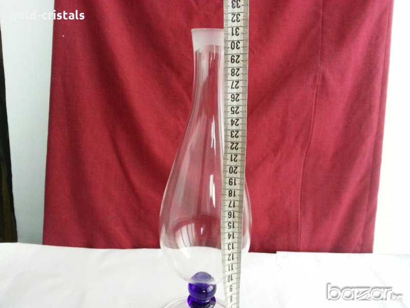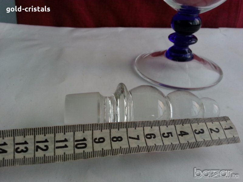 стъклена гарафа бутилка шише вис 40см кристално стъкло цветно стъкло стъклена тапа ретро стара старинна антикварна арт декор винтидж колекция без забележки стари антикварни предмети обзавеждане за дома и семейството подходяща за подарък за ценители и колекционери