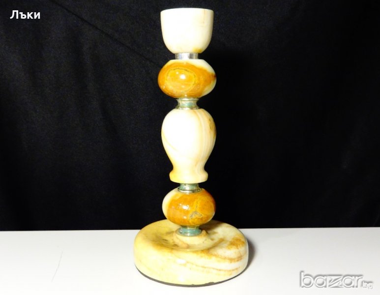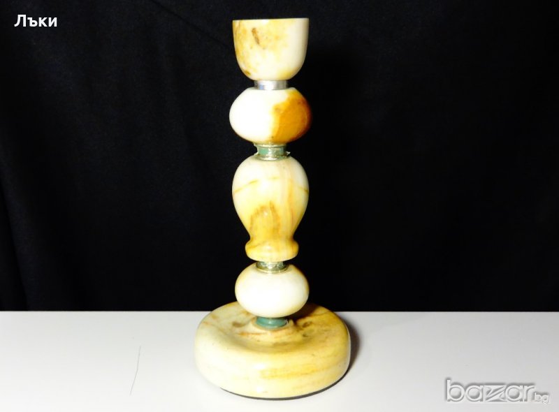 естествен оникс и бронз.Височина 21 см.,диаметър на основата 9 см.,тегло 730 гр.