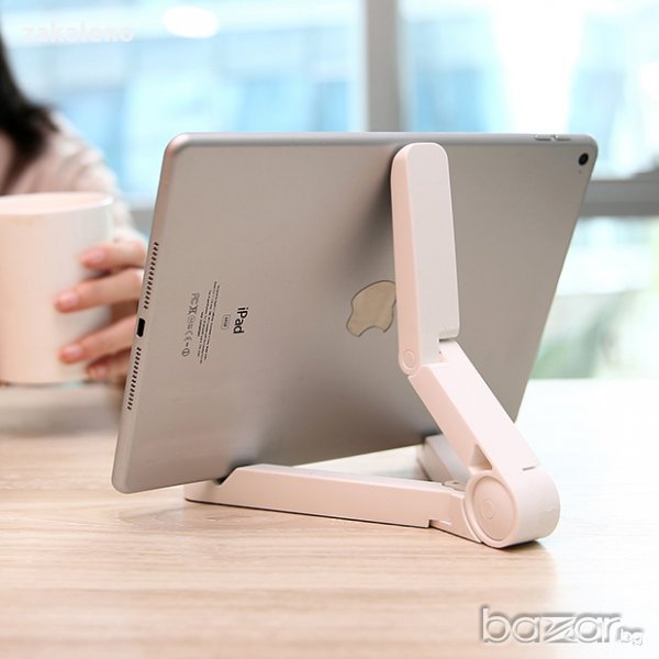 Многофункционална сгъваема стойка за таблет, телефон за маса, бюро и други. Регулируем ъгъл на наклон, височина и отстояние на основните крака. Възможност за вертикално и хоризонтално позициониране на устройството.