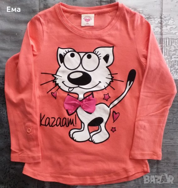На блузката с котенцето ръкавите имат копче и може да станат 3/4.