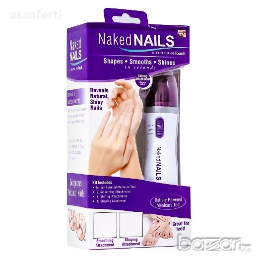 електрическа пила за нокти Naked Nails, който Ви представяме тук. Уредът за полиране на нокти Naked Nails представлява електрическа пила за маникюр и педикюр. Резултатът след употребата му са естествено изглеждащи, лъскави нокти, при това само за секунди. Този уред за полиране на нокти Naked Nails е подходящ както за маникюр, така и за педикюр. Електрическа Пила За Нокти Naked Nails също така може да се използва от жени и мъже. Ел пили за маникюр и педикюр е с електрическа, микрополираща технология. Пила за нокти Naked Nails има и бутон за слаба и силна степен и за изключване.