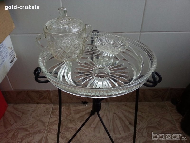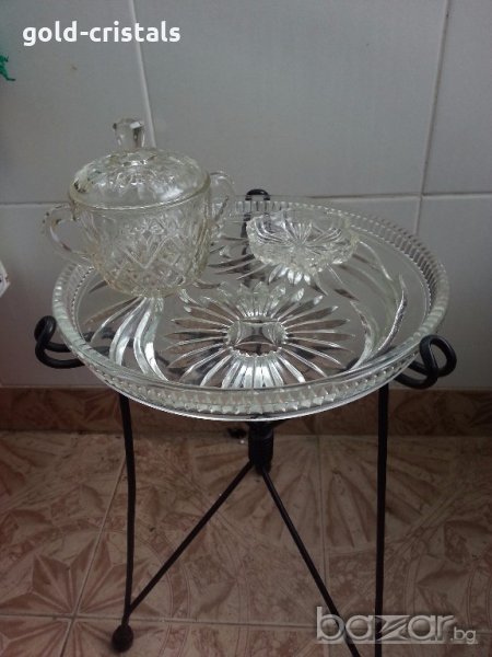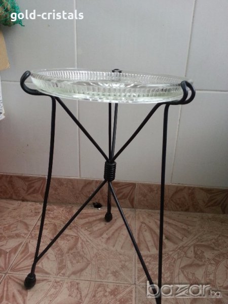 сгъваема масичка метал и кристален плот размери 32/50см стара старинна антикварна ратро арт декор винтидж колекция стари старинни антикварни предмети обзавеждане за дома и семейството подходяща за подарък за ценители и колекционери маса за кафе стъклена маса
