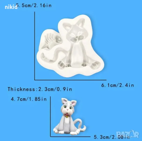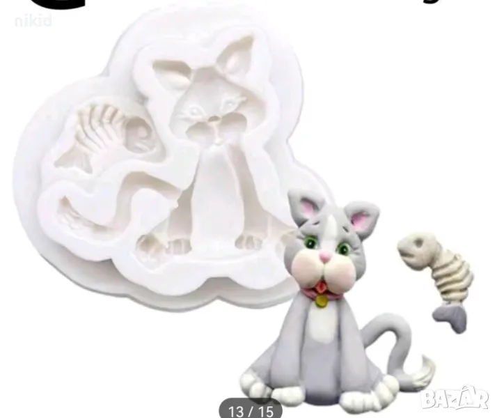 коте котка и рибена кост силиконов молд форма декорация и украса торта фондан бисквитки → Обява 20448372