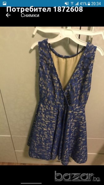 Дамска рокля-дантела/органза. Гол гръб, синя- размер- XS/S.
