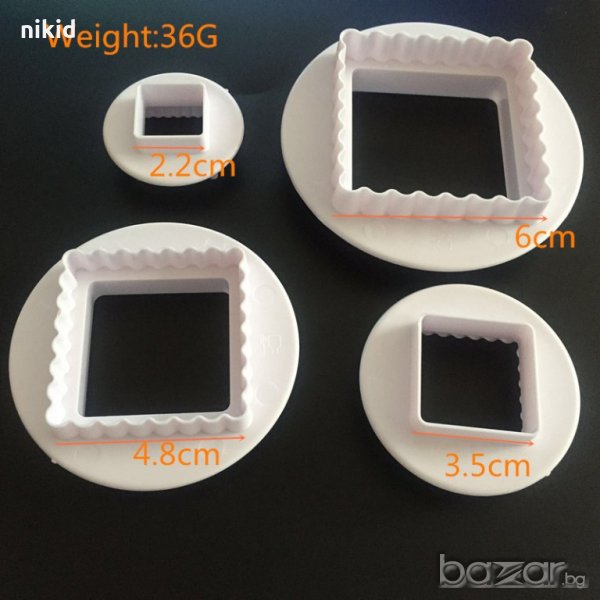 4 бр двустранни равни и къдрави квадрати рамки пластмасови резци форми за тесто сладки фондан → Обява 20467992