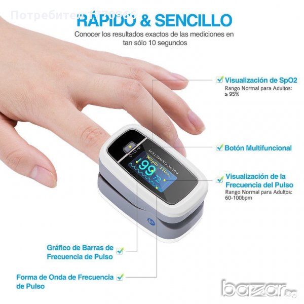• Spo2 Pulse Oximeter е с малък размер, лек, удобен за носене.
