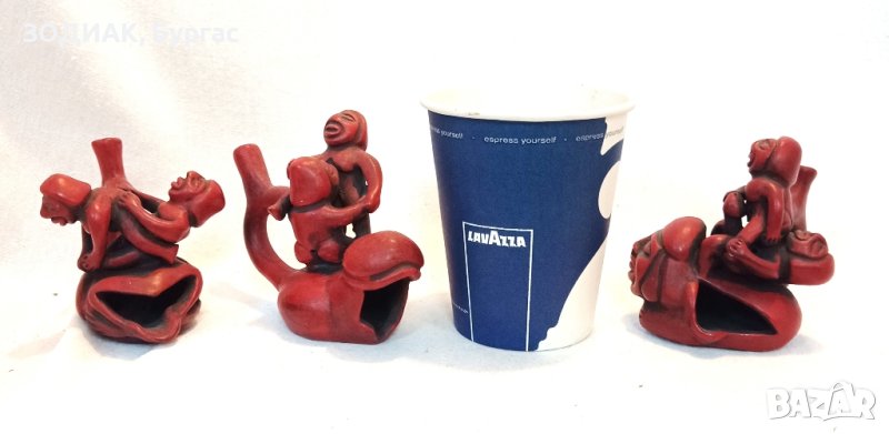 Копия на реално намерени керамични фигури от културата Huacos, в Перу, съществувала много преди Инките.