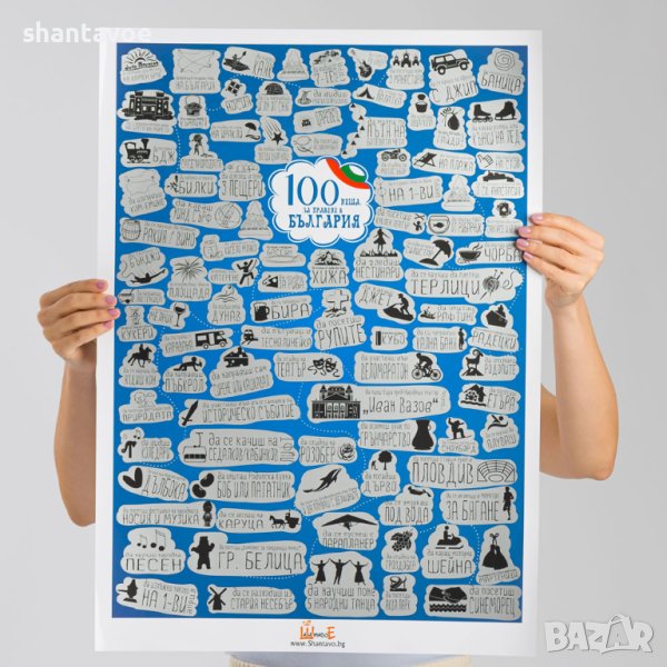 Забавен, цветен, щур, уникален (можем да продължим до безкрай) постер за 100 страхотни неща, които да направите в България.