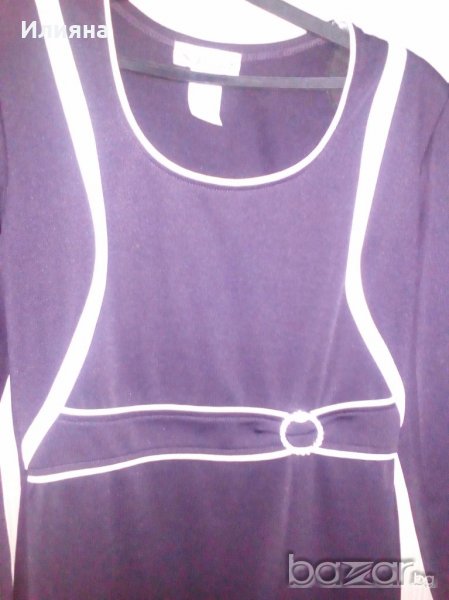 Елегантна дамска рокля, гръдна обиколка 86 см, талия 72 см, ханш 86 см, еластична е. 95 процента вискоза, 5 процента еластин. Произведено в България, на Карина Русе. Обличана е няколко пъти.