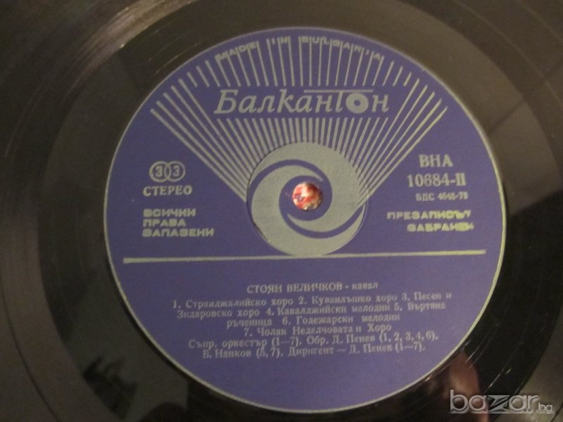 Рядка Грамофонна плоча Стоян Величков - Хора и ръченици - Народни песни - изд. 70те години - народна музика .