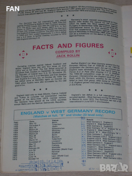 Англия - ФРГ /Германия/ четвъртфинал за европейско първенство оригинална футболна програма от 1972 г → Обява 20543696